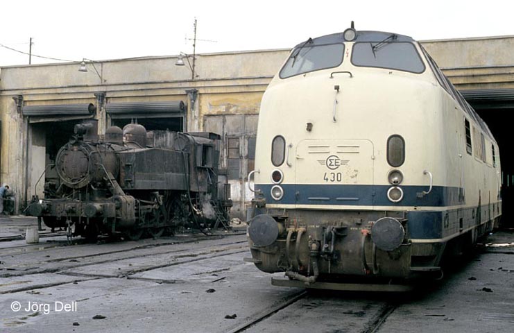 Im Bw Thessaloniki trifft die A430 auf die Heizlok Da61.
