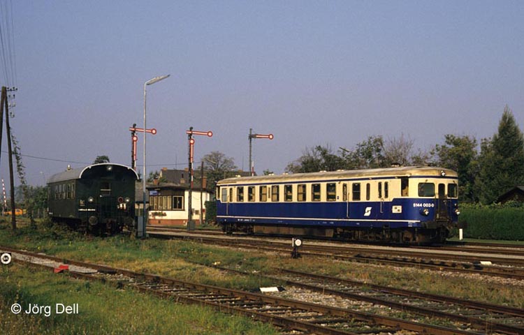 In Siebenbrunn-Leopoldsdorf erwartete uns am 5.10. dann der 5144 003, der auf der Stichstrecke nach Engelhartstetten pendelte.