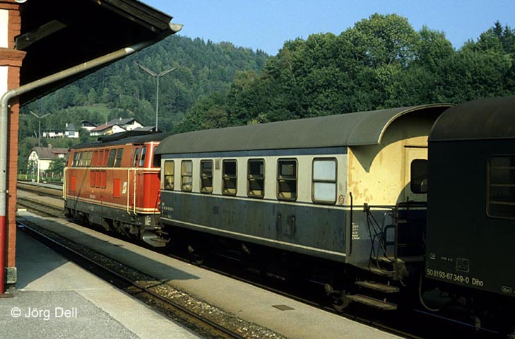 In Aspang ließ sich dieser schöne Zweiachser ablichten, der noch die alte Triebwagenlackierung trug.
