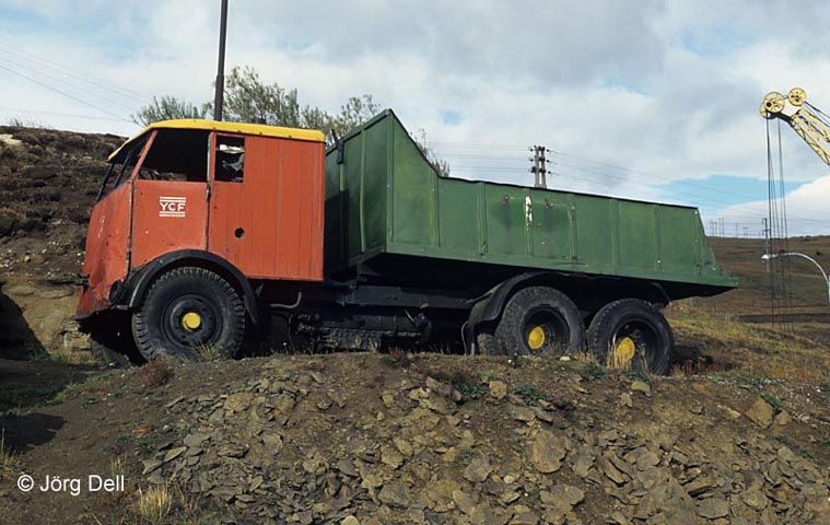 Im Minenmuseum von Rio Turbio kann man noch diesen Dampf-LKW bestaunen. Solche Gefährte wurden bis zur Fertigstellung der Bahn im Jahr 1951 für den Transport der Kohle benutzt.