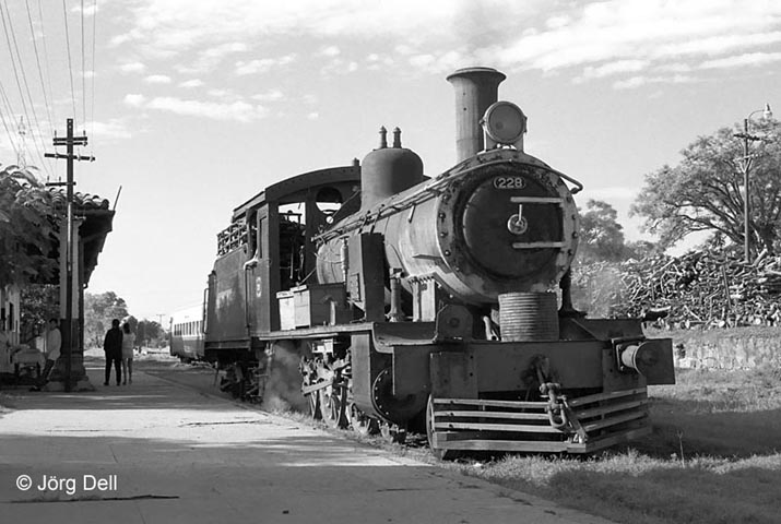 Noch täglich fuhr der Schülerzug Ypacarai-Asuncion. Die 228 (North British 19214/1910) setzt in Ypacarai um.