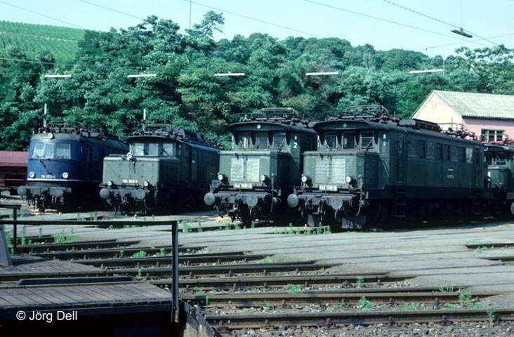 Als Würzburg noch ein Altbau-Ellok-Paradies war: 118 050, 194 049, 144 149 + 138 im Bw, 18.7.83