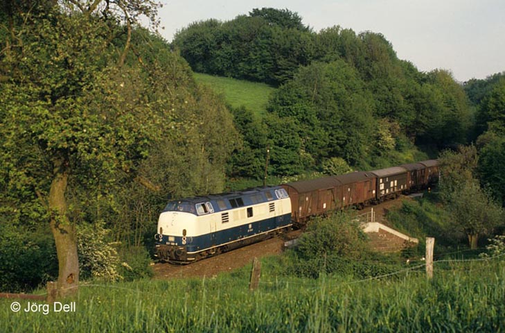 221 130 mit dem Zug aus Velbert bei Hofermühle, 26.5.87