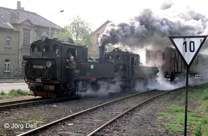 Mit Hilfe der Vorspannlok 99 1582 wird der Zug in den Bahnhof gebracht.