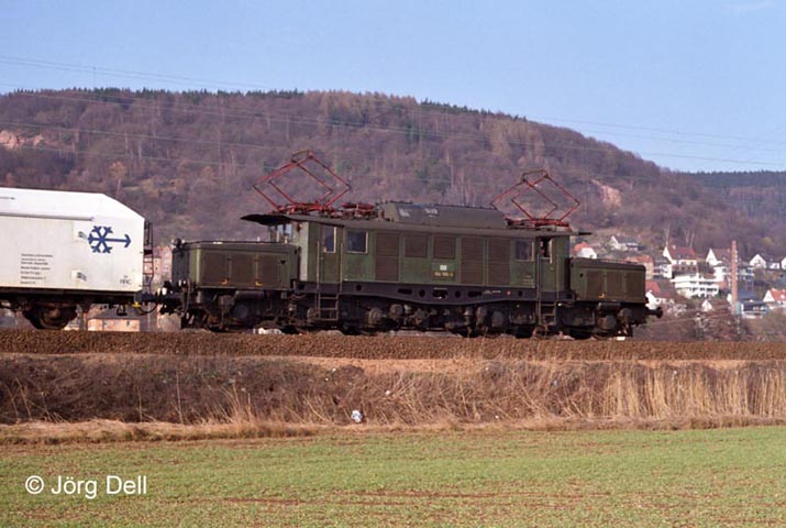 Die Mannheimer 194 186 zieht am 11.3.84 an Gelnhausen vorbei in Richtung Bebra.