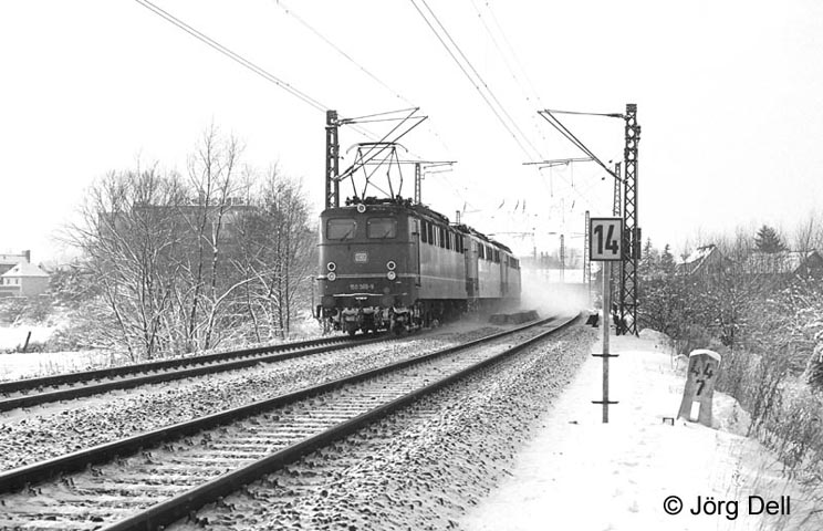 Ein Lokzug aus drei 150ern, angeführt von 150 066, an einem schönen Wintertag, dem 4.1.85 …