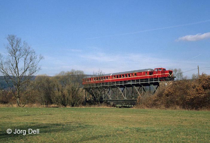 Hier überquert wieder die VL 11 die Kinzig kurz vor dem früheren Haltepunkt "Aufenauer Berg" (20.2.90).
