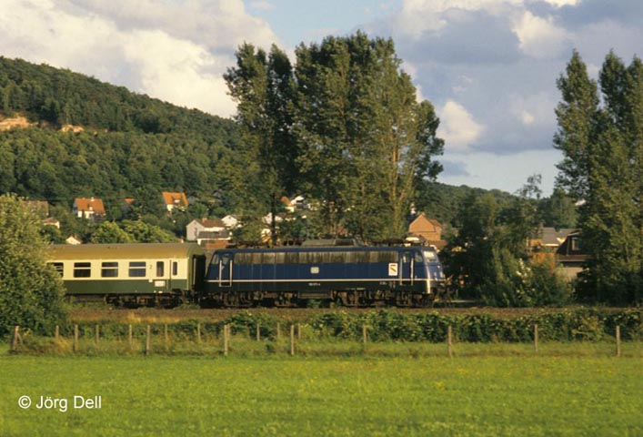 110 271 mit D454 (Görlitz-Frankfurt) am 10.8.85 bei Meerholz.