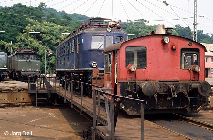 Die 118 054 wurde mit der 323 758 verschoben. Im Hintergrund 194 566 (5.7.83)