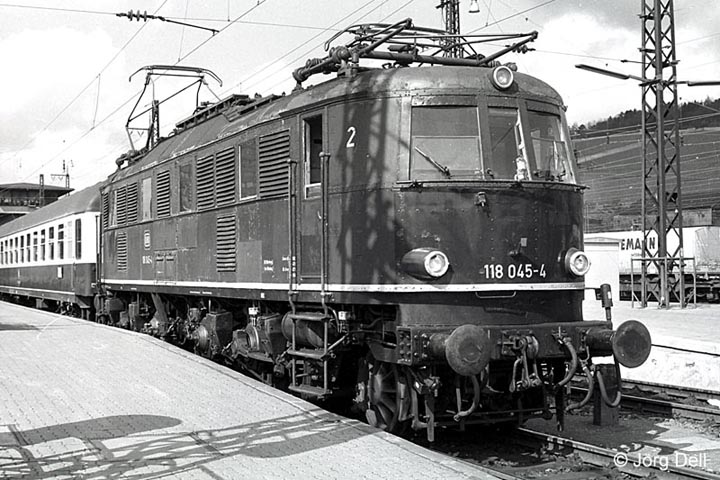 Am selben Tag wartet 118 045 mit dem E3065 auf Abfahrt.