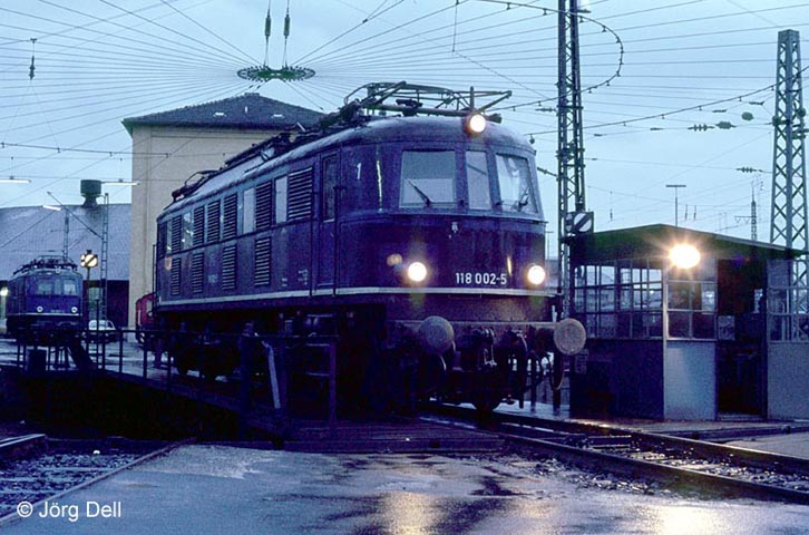 118 002 rückt zur Nachtruhe ins Bw ein, nachdem sie den E3422 aus Passau pünktlich um 19:30 Uhr in ihre Heimat gebracht hat.
