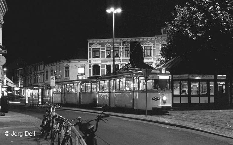 Bremen: In Bremen wurden wenige Kurse der Linie 10 mit den Hansa-Wagen T4b gefahren, hier Nr. 481 an der Hst. St. Jürgen Straße.