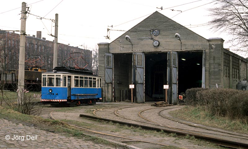 Strausberg: ATw 16 am Betriebshof. Da, wo man den Bügel der Ellok 15 sieht, prangt heute ein die Szenerie überragendes Parkhaus.