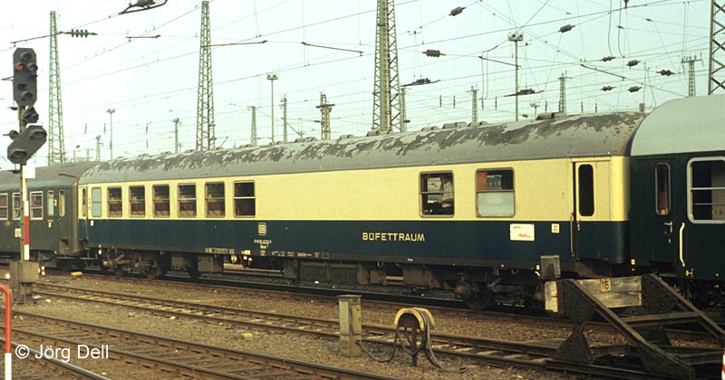 Büffetwagen BRbumh282 85-40 012 im E251 nach Prag (29.5.82).