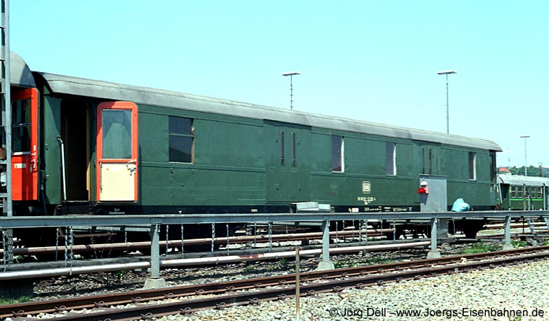 Auffällige Falttüren mit Fenstern in jeweils nur zwei Türen hatte der Düe945 92-12 290 (Pw4ü-37), Bw Tübingen, 19.7.83