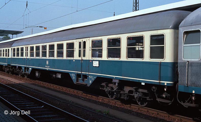 Lange Zeit war er für mich ein Rätsel, bzw. die Frage, ob es noch mehr Seriensilberlinge in b/t gegeben haben mag. Dank Hifo bin nun auch ich darüber aufgeklärt, dass dieser als Bnb720 eingereihte Wagen in Wirklichkeit auch eine Art Prototyp war. (Bnb720 22-11 250, 25.07.1983, Freiburg)