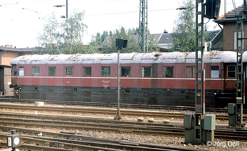 Der Bahnhofswagen 51006 (Anschrift „Meß4ügke 5010Mü“ war noch erkennbar) stand am 07.08.1982 in Hamburg Altona. Meiner Meinung nach müsste es sich um den Eilzug-Probewagen 75201 von Westwaggon (C4üpwe-50/1950) handeln.